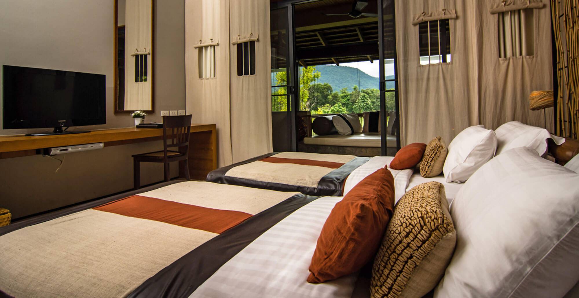 Enjoy the natural charms of Khao Yai through a harmonious blend of rustic and contemporary living at Kirimaya. Overlooking the idyllic views of Khao Yai's rolling green hills and mountain range, our Kirimaya Tented Villa perfectly captures the essence of ‘glamping’ in the heart of nature.